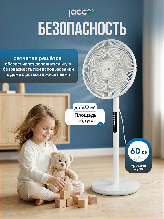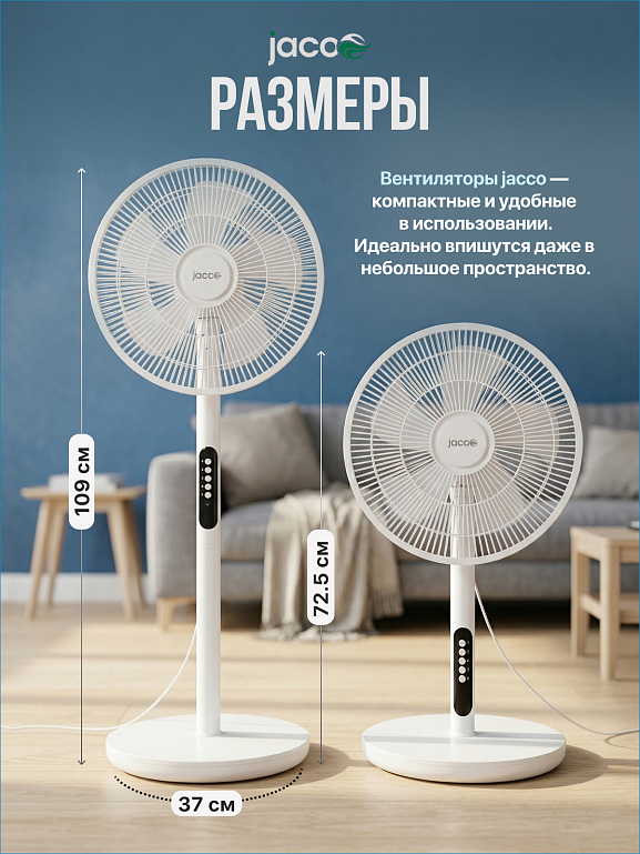 Регулировка высоты до 109 см делает устройство удобным для использования в разных сценариях. Устойчивая круглая подставка обеспечивает надежность, а защитный кожух делает эксплуатацию безопасной.