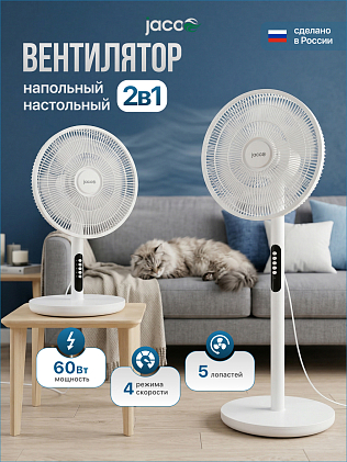 Модель можно использовать как напольный вариант для обдува всей комнаты или как настольный вентилятор для стола, кухни или спальни. Разборная конструкция позволяет легко менять формат и экономить пространство.